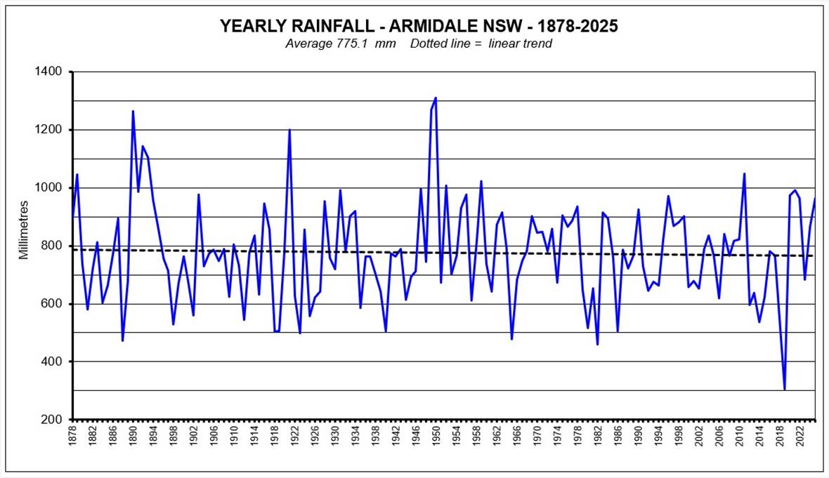 ARMIDALE LONG TERM AVERAGES & EXTREMES Updated to 2025