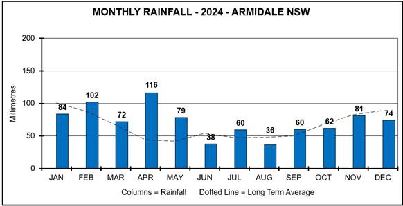ARMIDALE LONG TERM AVERAGES & EXTREMES Updated to 2025